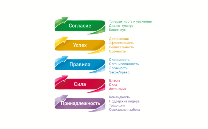 Ключевыми ценностями культуры согласия являются диалог и совместный поиск наилучших решений. Носители этой культуры знают, что все люди разные, но не просто мирятся с этим, а видят в различиях самый ценный ресурс. Они понимают, насколько важно иметь разные подходы к решению задачи, разные точки зрения, уникальные идеи — неважно, будет ли результат немедленным или может проявиться лишь долгое время спустя. Задача, которую они ставят перед собой, не сводится к победе в «олимпиаде» — они стремятся заложить основу для долгосрочного развития компании. Ради этого они готовы пожертвовать сиюминутным успехом, быстрым результатом.