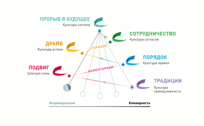 Культура синтеза вбирает в себя все лучшее, что есть в предыдущих культурах. Переход к ней добавляет в культурный код организации две важнейшие ценности: