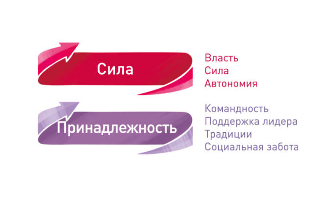 Ключевой причиной кризиса культуры принадлежности являются ее безликость (в ее рамках людям трудно проявить собственное «я») и система управления, которая полностью замкнута на «отце семейства» и перестает работать в подросшей компании. Поэтому развитие коллектива приводит к появлению новой культуры, которая держится на культе сильных индивидуальностей, борющихся за власть, — и это культура силы.