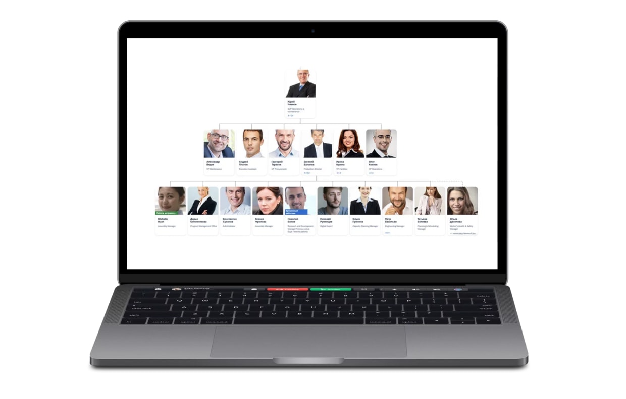 - Сервис предоставляет всю самую важную информацию о сотрудниках: контакты, роль, позиция в орг.структуре, обязанности