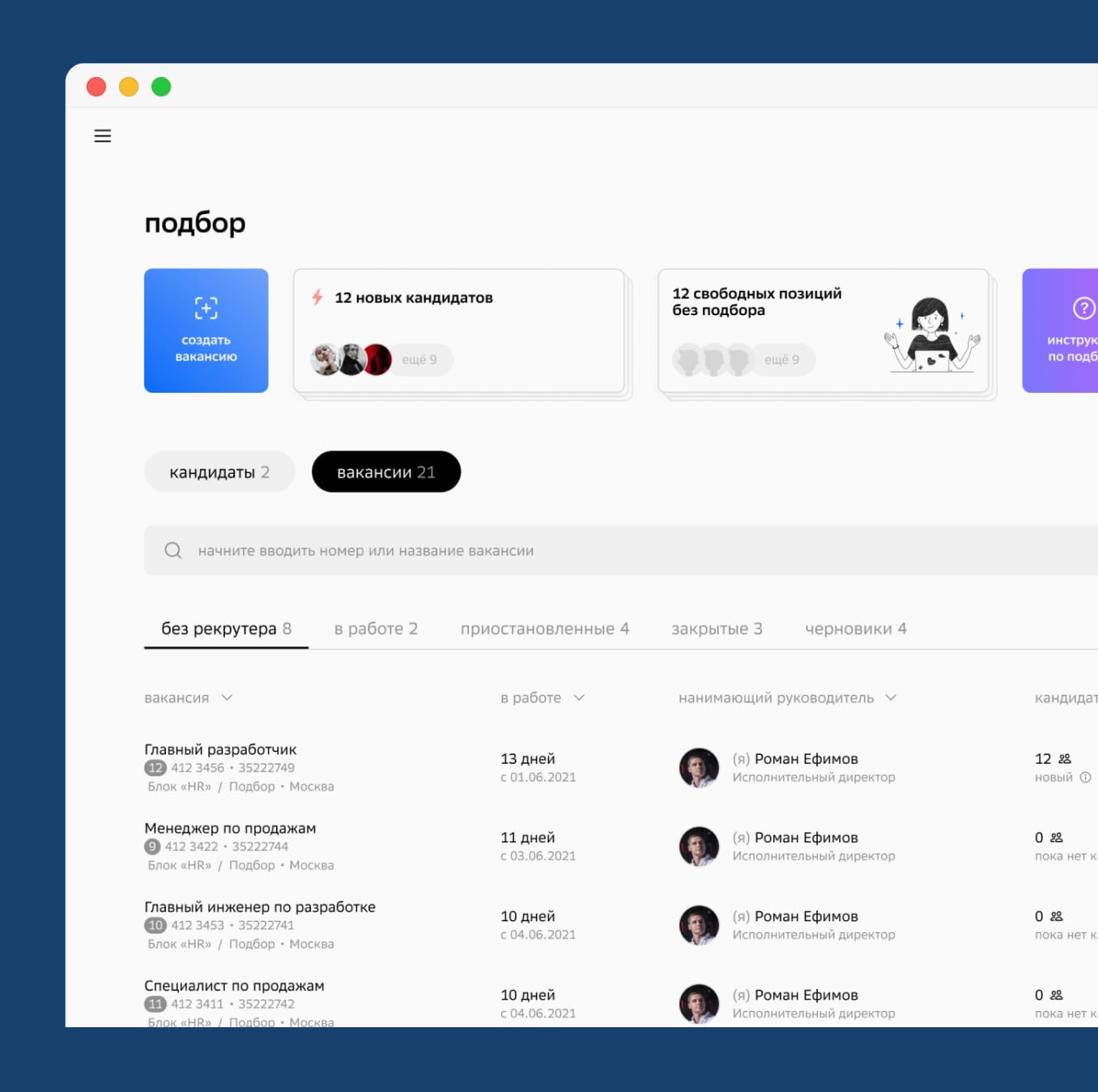 - Автоматизация полного цикла подбора сотрудников