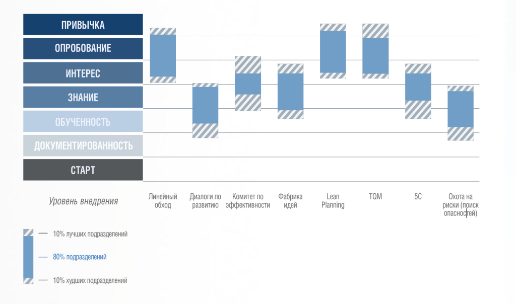 - Какие инструменты и в каких подразделениях уже вошли в привычку?